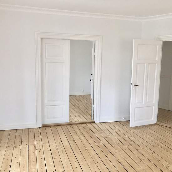 Welcome to this apartment where light and atmosphere meet a charming location in Aalborg. A move-in ready home with a pleasant atmosphere. The apartment features three large en-suite living rooms, offering plenty of possibilities for layout so that two of the rooms can be used as bedrooms, giving a total of three bedrooms. The classic planed wood floors, panel doors and beautiful stucco ceilings create a unique atmosphere. Access to all rooms from the central hallway provides a practical and open layout, while the solid double doors between...