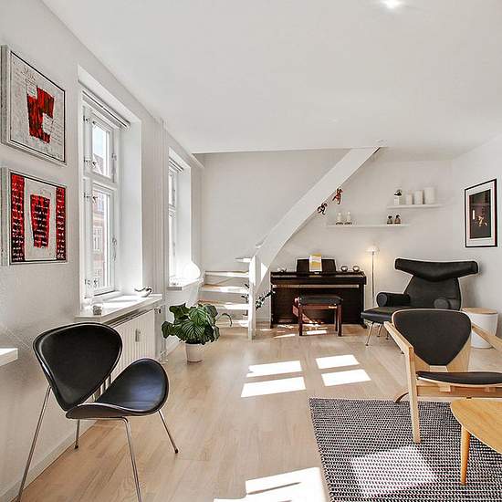 Welcome to this modern and spacious two-level apartment in the heart of Aalborg city centre – a true gem with stylish decor and thoroughly modernised fittings. The apartment offers: Entrance hall with access to a large bathroom with towel radiator and stacked washer/dryer Large living room connected to the kitchen and dining area Beautiful kitchen with underfloor heating and all major appliances Bright and inviting open-plan kitchen/dining area with a view of the communal courtyard First floor with a lounge/office and a bedroom with a w...
