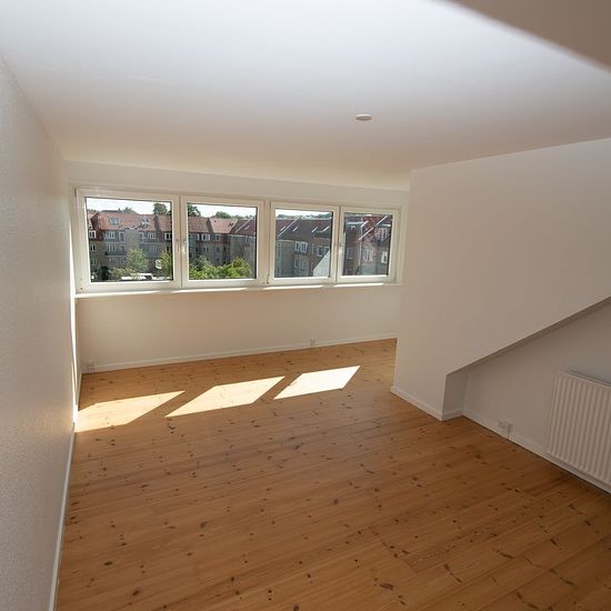 Welcome to this lovely attic apartment where light and quality meet a charming location in Aalborg. A move-in ready home with a pleasant atmosphere. The apartment offers three spacious rooms, a large eat-in kitchen, and a modern bathroom. The well-designed entrance functions as a hallway and provides access to all rooms. The eat-in kitchen is furnished with beautiful cabinet elements and equipped with a dishwasher, fridge/freezer, and ceramic glass stove. There is plenty of space for a six-person dining table, perfect for cozy dinner partie...