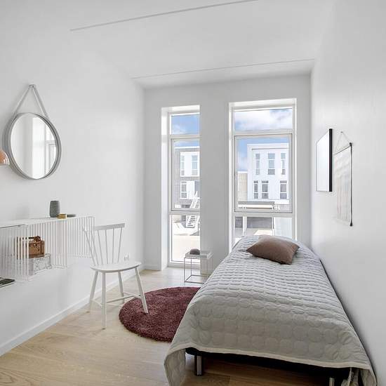 Alle rækkehusene i Sofiendalen er indrettet med store køkken/alrum, som er bygget i forbindelse med stuen. Tilsammen danner det store åbne rum rammen for et hyggeligt fællesskab og liv. I midten af Sofiendalen finder du rækkehusene, som har udsigt til de skønne grønne fællesarealer. Rækkehusene har en mørk teglbase, som bliver komplimenteret af en elegant aluminiumskasse, som giver byggeriet en lethed og et spændende spil i facaden. Der er højt til loftet i alle boligerne, hvilket giver plads til stilrene høje vinduer, som giver et dejligt n...