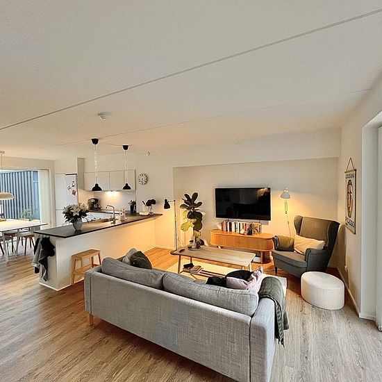 NYOPFØRT 4-VÆRELSES RÆKKEHUS MED RUMMELIG HAVE! Drømmer du om en moderne, nyopført bolig i et af Aalborgs mest attraktive nye områder? Så er dette 4-værelses rækkehus på Poul Anker Bechs Vej måske lige noget for dig! Huset er bygget i kvalitetsmaterialer og byder på et stilrent og lyst køkken fra JKE med alt i moderne hvidevarer samt god skabsplads. Fra køkkenet træder du ind i den store, lyse stue, der takket være store vinduespartier får masser af naturligt lys. Fra stuen har du direkte adgang til en skøn have/terrasse, hvor du kan nyde...