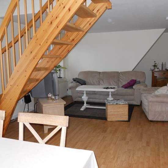INDRETNING: Lys entre med klinkegulv, nyere lyst badeværelse med bruseniche og plads til vaskemaskine og tørretumbler, nyere køkken, lille værelse/kontor, hyggelig stue med god trappe til 1. sal med 2 gode værelser med loft til kip og synlige hanebånd. Lyse gipslofter i hele lejligheden. Udhus. Nem forhave og ugenert flisebelagt gårdhave.