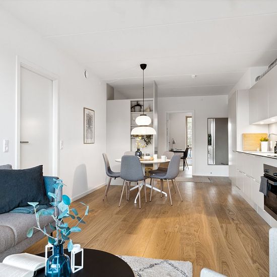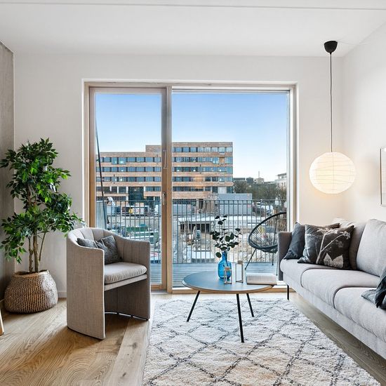 Teglgården's 4-room apartments Room for more – live comfortably in Teglgården's 4-room apartments. Do you dream of spaciousness, flexibility, and a daily life with high comfort? In Teglgården's 4-room apartments, you get a modern home where functionality, quality, and community go hand in hand. Here you live in the heart of Trælasten in a thoughtful building that offers space for family life, working from home, and relaxation. The well-designed 4-room apartments feature an optimal layout with good separate rooms and a bright, open living ar...