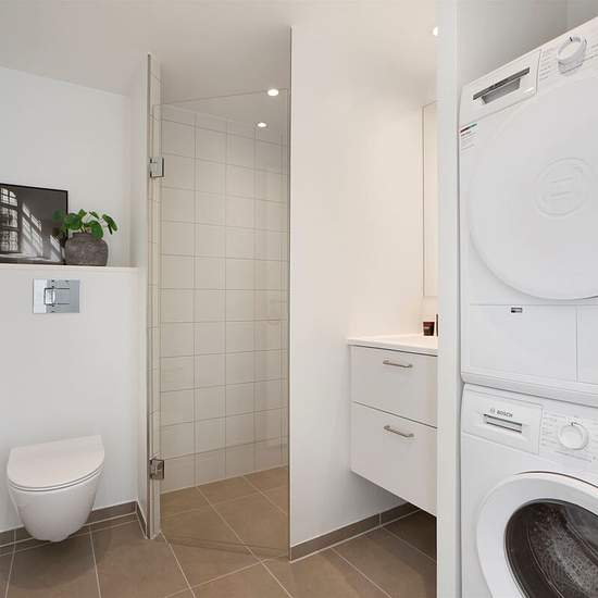 Newly built apartments in Virkelund in Coop City. This 4-room apartment offers 111 m² with an enclosed balcony and an open kitchen-living area, three good bedrooms, a practical storage room and a modern bathroom with a washer-dryer column. Built-in wardrobes in the entrance provide extra storage space. In Gæstfriheden there are homes for everyone. Here singles, couples, families and mature adults can find their home with perfect private settings combined with surroundings that invite community. In the first phase 61 homes are being offered, ...