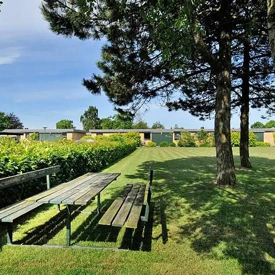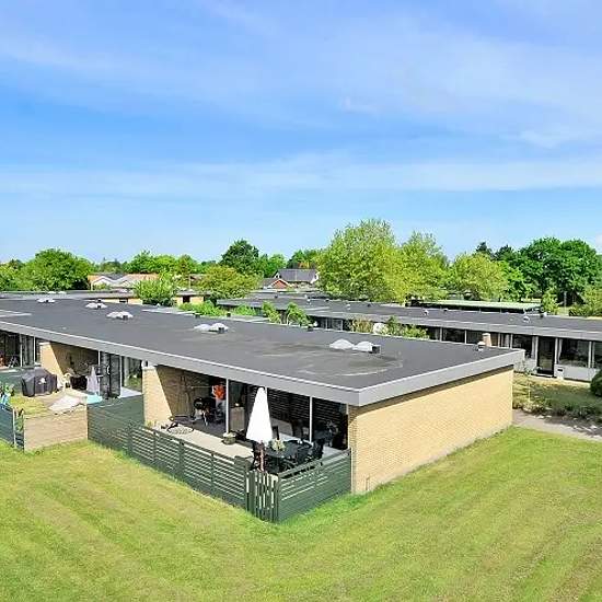 The complex is located in three clusters on Plougslundvej in Billund. The homes are available as 1-, 2-, 3- or 4-room terraced houses. The homes were built between 1974 and 1976. Each home has its own garden. The complex is situated in a quiet, green area, with a playground and shared parking spaces with the option to rent a carport. In addition, the complex is close to shops, a bus stop, a sports centre and a school. Billund also has a kindergarten, Billund Airport, the amusement park Legoland and Lalandia.