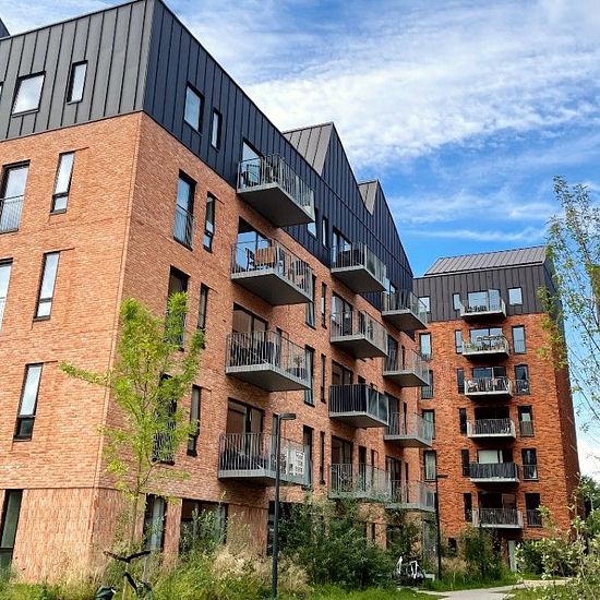 On the 6th floor with plenty of light Come to OPEN HOUSE in our beautiful show apartment WEDNESDAYS 5-5:30 PM and SUNDAYS 11 AM-12 PM. This 4-room apartment includes: – three good rooms with built-in wardrobes, two smaller and one large – the heart of the apartment, the lovely living room/kitchen open space – nice kitchen with all major appliances – wonderful balcony – lovely bathroom with laundry column – storage room in the apartment, so you have everything close by THE LOCAL AREA KobberEngen’s location in Brøndbyvester bordering Glostrup...