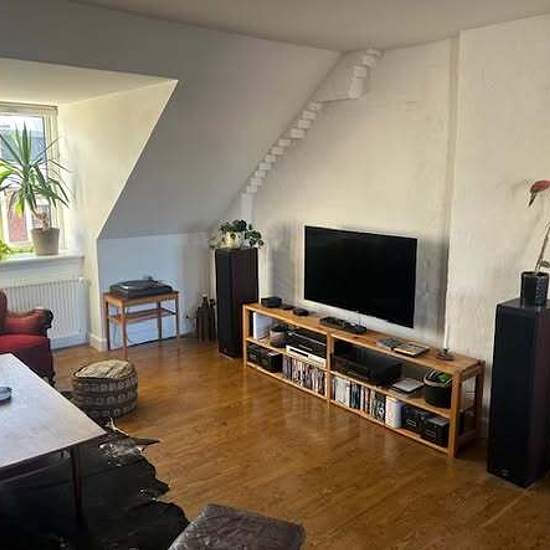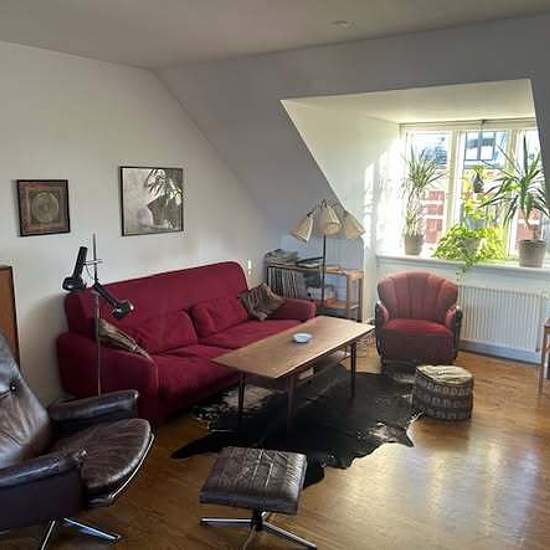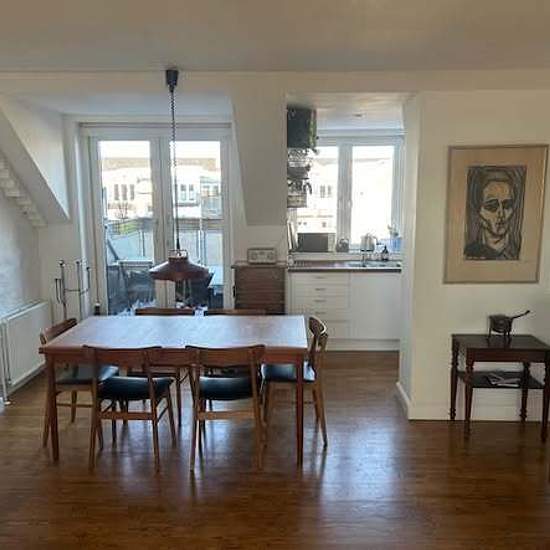 Stylish penthouse in Nørrebro Located just 100 m from Nuuks Plads metro station. Light-filled and spacious. 122 sqm, 2 bedrooms, living room and a library. West-facing balcony. Fully furnished, fully equipped -dishwasher, washing machine, TV, DVD, stereo. Ideal for couple, small family or professionals. Not suitable for flat-sharing. Available ASAP or 1 March - 1 June. 19 000 DKK/month (including heating, electricity and internet). If interested please send PM with a short introduction.