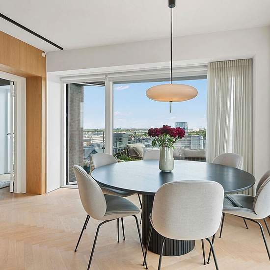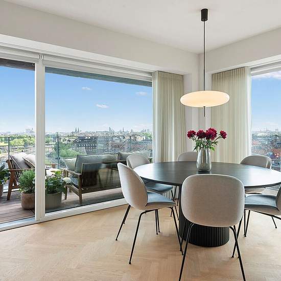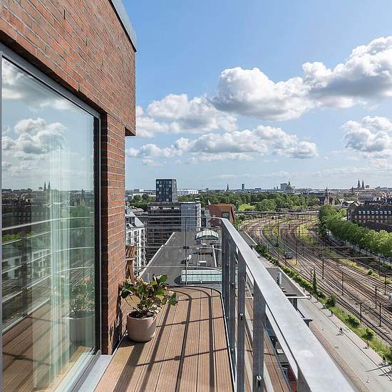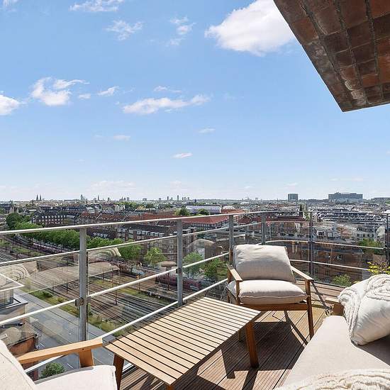 Do you dream of living in the heart of Østerbro — with style, comfort and views? Welcome to Amerika Plads 23, 12th floor, right — a modern and spacious apartment of 139 m², perfect for a couple, a family, or the quality-conscious tenant. The apartment offers: - Three well-appointed bedrooms, including a spacious master suite - Views over Copenhagen and parts of the waterfront - Two large balconies: a spacious corner balcony facing south, southwest and west, and an east-facing balcony - Two elegant bathrooms, both with modern fittings and ge...