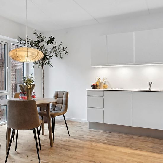 Welcome to this spacious and modern 4-room apartment located on the 5th floor of the attractive Martha House in Ørestad. Here you get a home that combines functionality, light, and a fantastic location close to nature and city life. The apartment offers a large and inviting living area with an open kitchen and living room combined. The large windows ensure beautiful natural light and create a bright and airy atmosphere. The kitchen is sleek and modern with ample cabinet space and all necessary appliances. The residence contains three good ...