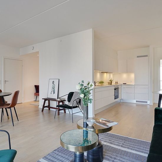 Lovely apartment with balcony near Vestamager Metro Station In the southern Ørestad, you will find this lovely apartment in a building from 2016. Inside, you will find a good floor plan, beautiful surroundings, and a lovely influx of light, while the icing on the cake is the large, sunny balcony. The heart of the home is undoubtedly the inviting living area, where the kitchen and living room are fully integrated. The one-sided kitchen presents itself as modern and timeless with white handleless doors, while the spotlights under the overhea...