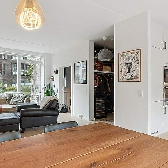 The apartment is located on the ground floor in the desirable Sluseholmen area, with a beautiful view of the canal. The area is inspired by Amsterdam and is interspersed with canals, bridges, and pathways. It features a vibrant local community with good shopping and transportation options, including the Metro, cafes, childcare facilities, the harbor bath Koralbadet, and a boat taxi that sails to the city (Nyhavn, the Opera, etc.) every quarter hour. There is a short distance to the beautiful natural area of Amager Fælled, the shopping center...