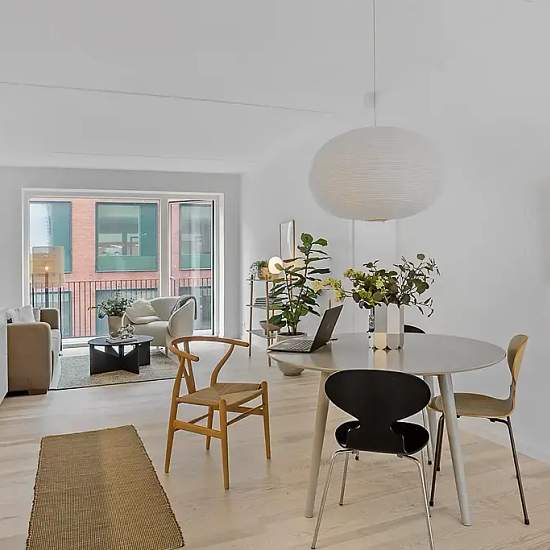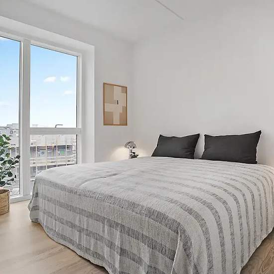 Please note: Tenants should be aware that the pictures are visualizations and do not necessarily depict the specific residence, but may be from other apartments/terraced houses in the complex. The home: You enter a spacious entrance hall with access to the home's three bedrooms and a bathroom with a separate shower. From here you step directly into the open-plan kitchen/living area with a good layout and space for both a dining area and a seating arrangement. From the kitchen/living area you step straight out onto the south-facing balcony....