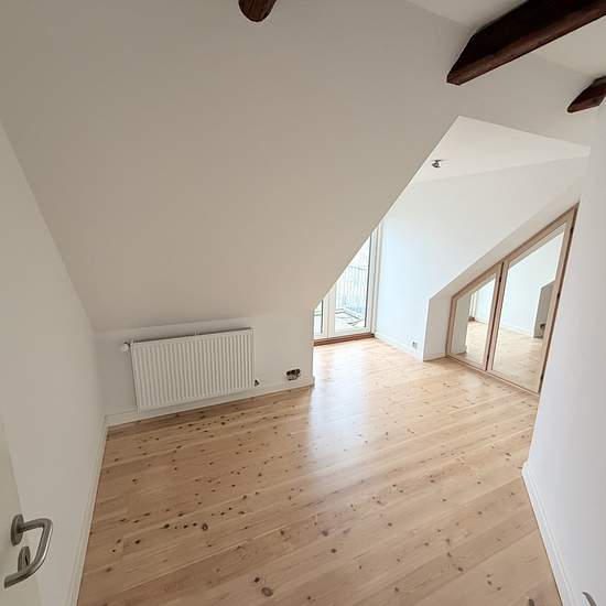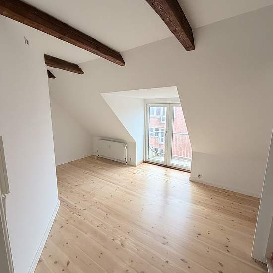 Newly renovated penthouse apartment with new kitchen and bathroom, and 4 balconies (Pictures taken during renovation) The apartment offers, among other things: New Designa kitchen with appliances (incl. dishwasher, washing machine and tumble dryer), new bathroom with underfloor heating, spotlights in the bathroom, new Genvex heat recovery ventilation system, built-in wardrobes in all rooms, new glass doors on the rooms, 4 balconies. The apartment includes a kitchen open to the living room, which has large windows and balconies on both sid...