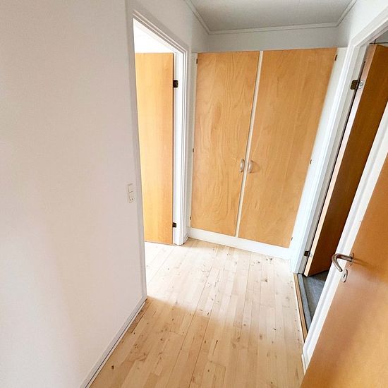 I udkanten af Haderslev, ud mod åbne marker og tæt på fjorden ligger denne lejlighed.