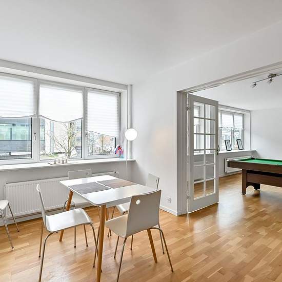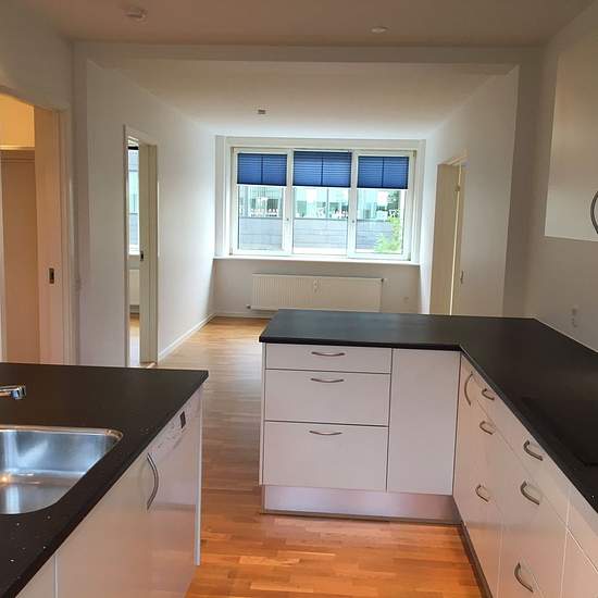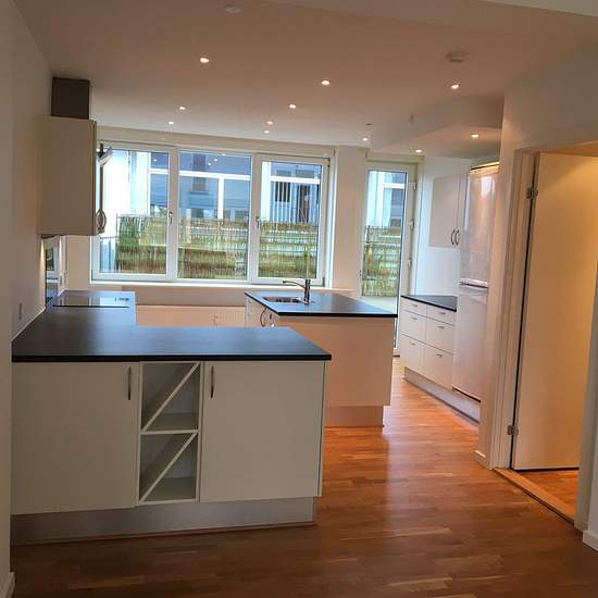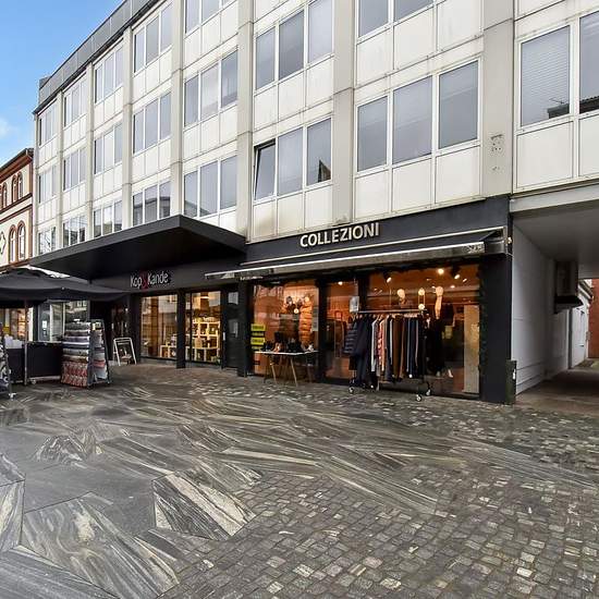 Large apartment with its own terrace - on Herning Pedestrian Street Large apartment located on Herning Pedestrian Street. The apartment is in particularly good condition and is arranged with an entrance hall with closets, a nice bathroom with space for a washing machine and dryer. Attractive kitchen with kitchen island and access to its own terrace. Additionally, a lovely dining room with French doors to a spacious living room. Three bedrooms with closets. The apartment has an entrance from the pedestrian street — with an intercom. Expand/...