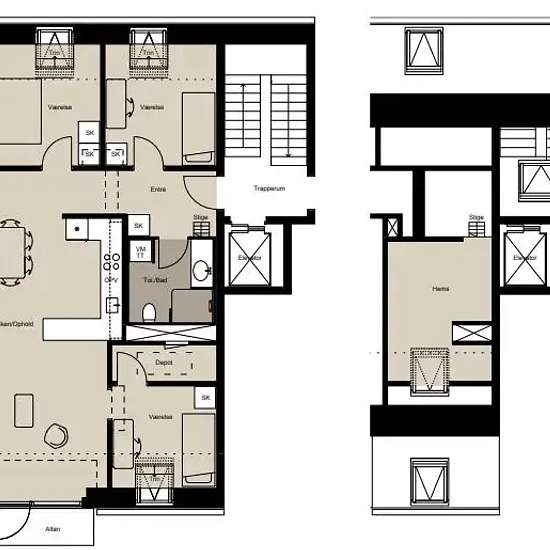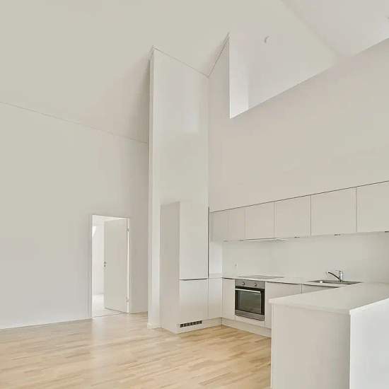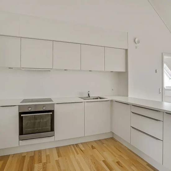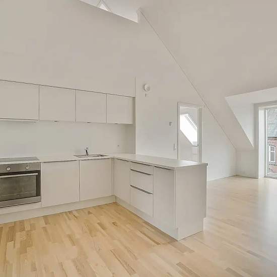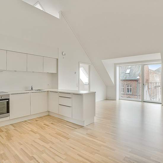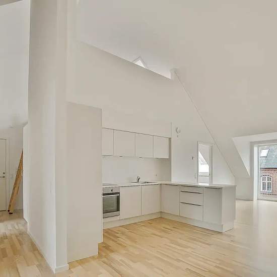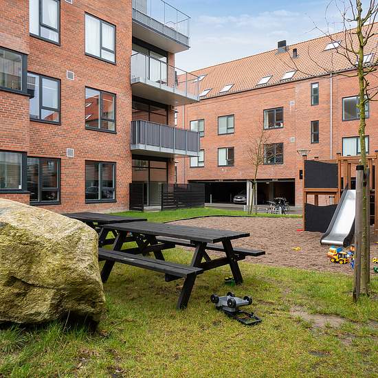 This residential complex was built in 2018. The property consists of four townhouses with four floors and a street house with three floors, all equipped with elevators and terraces or balconies. From some of the apartments at the top of the complex you can even enjoy the view of the spires of Frederiksborg Castle. The homes vary in size from 82 to 120 m2 and contain 2 to 4 rooms. All units have either a terrace or a balcony. The top floor of the street houses also features a large, spacious loft that can be used for various purposes. All hom...