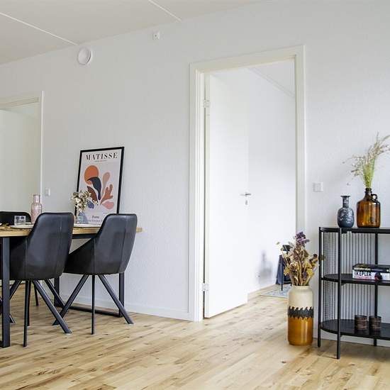 Nyopførte familieboliger i hjertet af Ikast Velkommen til et helt nyt og moderne boligkompleks i den attraktive nordlige del af Ikast midtby! Her finder du 64 familieboliger, der er perfekt placeret for at gøre hverdagen både praktisk og bekvem. Boligerne ligger tæt på offentlig transport, shoppingstrøg, idrætsanlæg, skole og daginstitution, så du har alt, hvad du behøver, lige i nærheden. Uanset om du er en ung familie eller en aktiv børnefamilie, er denne afdeling et fantastisk valg for dig. De nyopførte boliger tilbyder moderne og f...