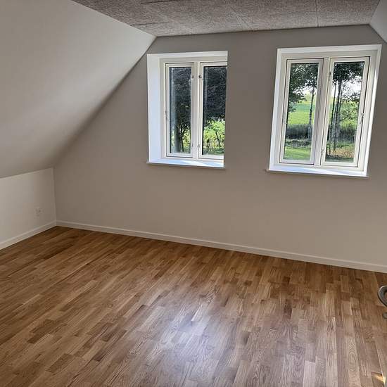 Fantastic newly built architect-designed villa near Holmstrup Fantastic architect-designed villa for rent: 160 m² of living space and a huge garden with views over fields and the local church in Holmstrup. Everything is new and newly landscaped. Underfloor heating throughout the house. Fiber internet installed. Contains: entrance hall, utility room with heating installation and laundry area, lovely open kitchen with all appliances, cozy living room with access to the garden and terrace, a bedroom and a bathroom with a shower enclosure. The ...