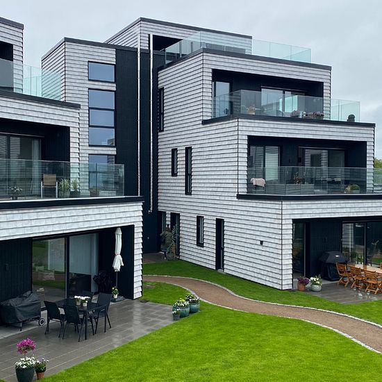 Exclusive apartment with sea view and materials of exceptional quality. You enter a bright entrance hall with further access to the apartment's large and bright kitchen-living room with a large kitchen island and plenty of cabinet space, dining area, as well as a good living room with access to the house's terrace or balcony. Furthermore, there is a bedroom adjoining a walk-in closet and its own bathroom, two rooms, as well as a storage room with a wall of closets and an additional bathroom. Garden: Own terrace Outbuildings: Storage room,...