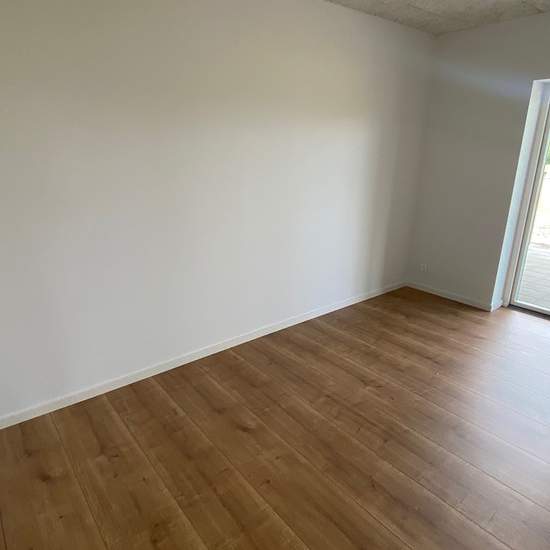 Bolig i naturskønt område. Boligen beliggende i stueplan med direkte adgang inkluderer entré, bryggers, stue/køkken-alrum, 3 værelser, 2 badeværelser, terrasse foran- og bagved boligen, én parkeringsplads samt et skur på 3,5 m². Materialebeskrivelsen Boligen er opført med ventilationsanlæg, gulvvarme, HTH inventar, vaskemaskine, tørretumbler, kølefryseskab, pyrolyseovn, induktionskogeplade og opvaskemaskine. Beliggenhed Boligområdet er beliggende 100 meter fra busstopsted, 200 meter fra bager og pizzaria, samt 600 meter fra REMA 1000, d...
