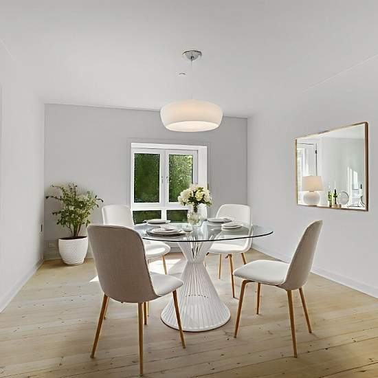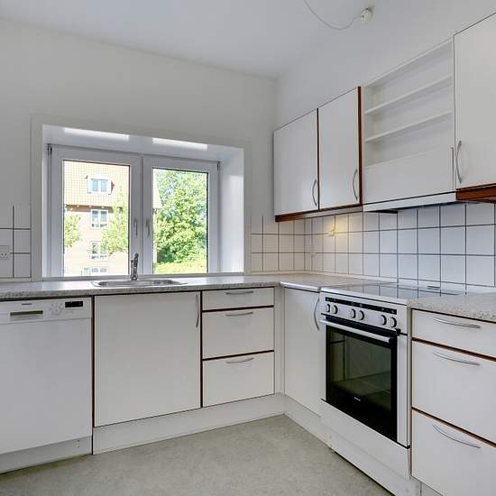 Velkommen til en indflytningsklar lejlighed, hvor lyse overflader og gennemgående trægulve skaber en rolig og indbydende ramme om hverdagen. Planløsningen er velfungerende med en rummelig stue som hjemmets naturlige samlingspunkt. Her er god plads til både sofaarrangement og spiseafdeling, og de store vinduer giver et behageligt lysindfald samt et grønt kig til de omkringliggende træer. Køkkenet ligger separat og er holdt i et klassisk, hvidt udtryk med flisebeklædt væg, god bord- og skabsplads samt alt i nødvendige hårde hvidevarer, herun...