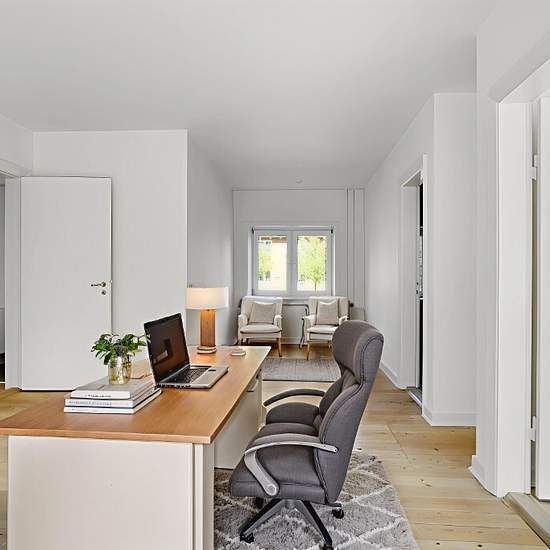 Welcome to a move-in ready apartment where light surfaces and continuous wooden floors create a calm and inviting setting for everyday life. The layout is well designed with a spacious living room as the home’s natural gathering point. There is plenty of room for both a seating area and a dining area, and the large windows provide a pleasant influx of light and a green view of the surrounding trees. The kitchen is separate and kept in a classic white design with a tiled wall, good counter and cabinet space, and all necessary major applianc...