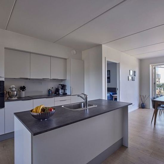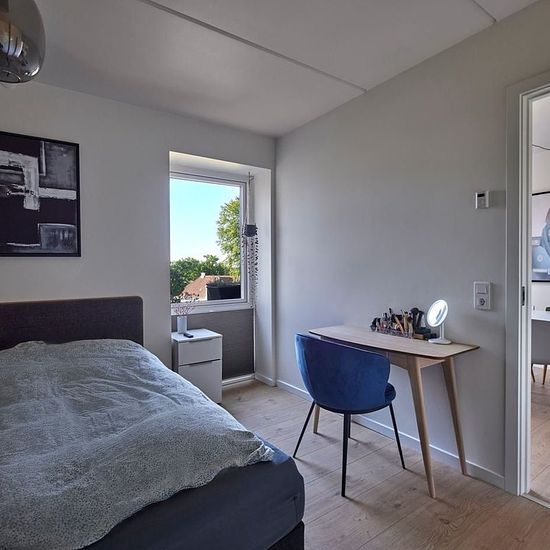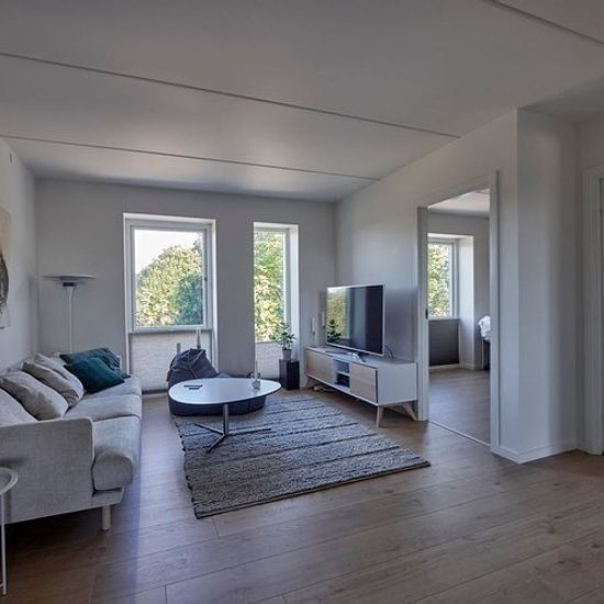 The apartment offers a good entrance leading to a large kitchen-living room. From the living room, there is direct access to a lovely balcony. 2 spacious bedrooms with built-in wardrobes. Finally, a good bathroom with laundry facilities. The apartment is located close to shopping, recreational activities, daycare facilities, schools, and beautiful nature. After a short bike ride, you can also reach the bathing jetty at Kolding Fjord. *Floor plan is indicative and without liability *Photo is not necessarily from the actual apartment