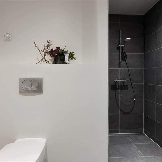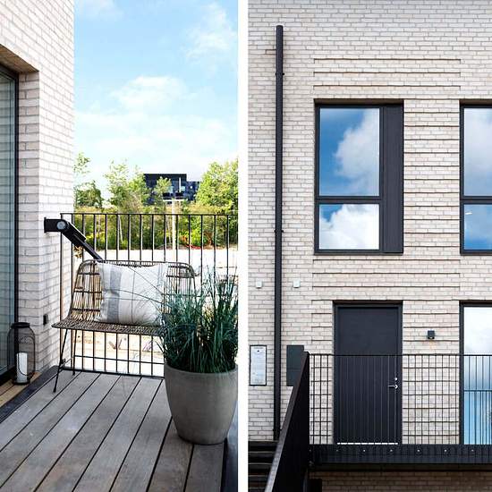 Housing type C2 appeals to many family types, offering plenty of space both upstairs and downstairs. A lovely bright open-plan living area is fitted with an attractive HTH kitchen and appliances from Siemens. There is a guest bathroom on the ground floor, and three bedrooms plus a bathroom on the first floor. The home is light-filled with large windows, underfloor heating and built-in wardrobes. The rental homes at Trongården are all Swan-labelled (Nordic Swan Ecolabel) and have access to cozy, green communal areas.
