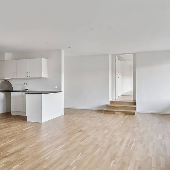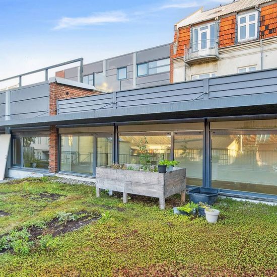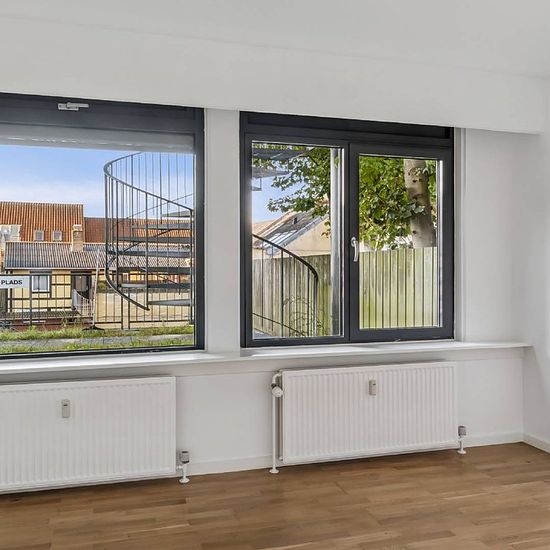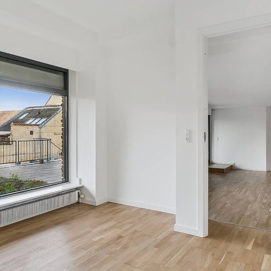 The apartment is 120 m² and is located centrally in Næstved, within a short distance to the town's shops, cafés, and public transport. The residence includes an entrance hall, a bright and open kitchen-living room with plenty of space for both cooking and living, three regular-sized rooms, and a bathroom. There is good spaciousness and natural light throughout the entire apartment. From the living area, there is access to a large terrace, which offers the opportunity to enjoy outdoor life in the middle of the city. The apartment is well su...