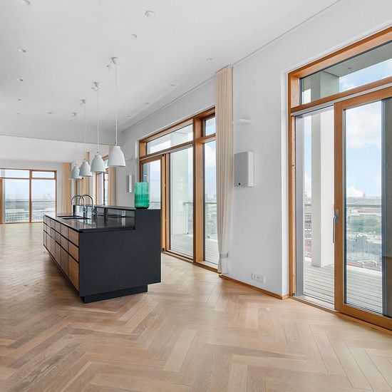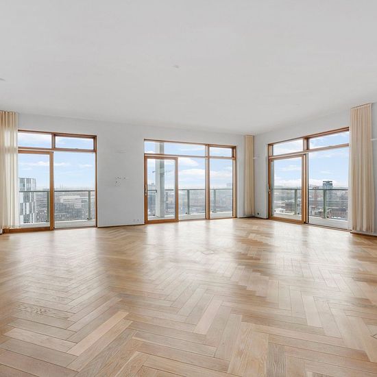Welcome to Nordhavn! You now have the opportunity to rent this fantastic apartment of 227m2. The apartment contains a large kitchen/dining room, a large living room with a panoramic view of the city, 3 large bedrooms, a walk-in wardrobe and 2 bathrooms. The floor plan is well thought out and all materials are chosen with care and love for details. Along the apartment you also have access to a large terrace from which you can enjoy the outstanding view of the capital of Copenhagen. The building called “FRIHAVNSTÅRNET” is an old grain silo fro...
