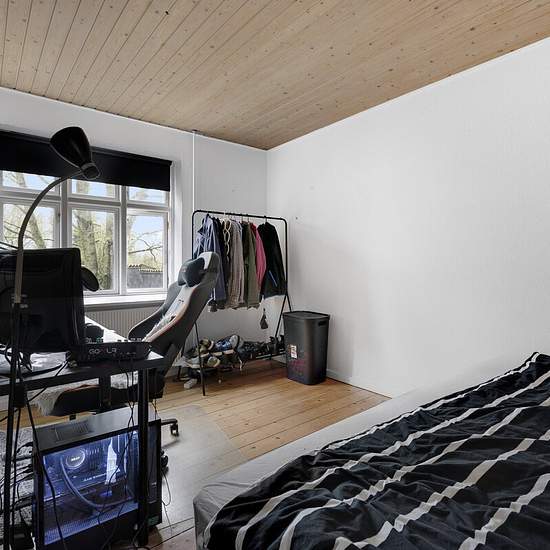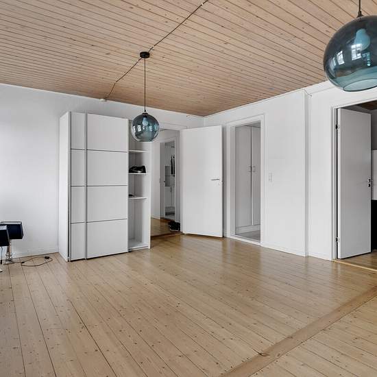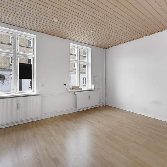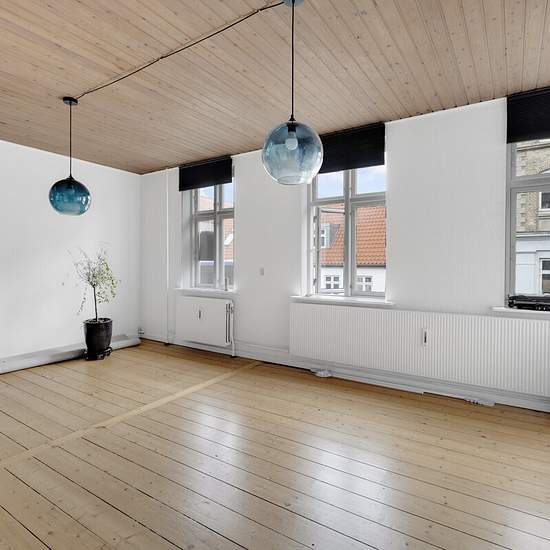 Welcome to a spacious apartment in a classic city building with a distinctive dark façade and paned windows. Here you get 116 m² laid out in a functional floor plan with an entrance/hallway, a large living room, a separate kitchen, three good bedrooms and a bathroom with a window. The choice of materials is bright and inviting, with wooden floors throughout, white walls and wooden ceilings that create a warm, calm atmosphere and make it easy to decorate personally. The living room is generous in size with several windows that provide pleasa...