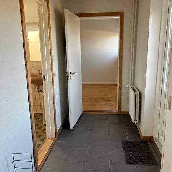 The rental property will be shown on Tuesday, November 4, 2025 at 3:00 PM. You are welcome to the viewing. Property located close to Nykøbing F. and near the bypass road with quick and easy access to the south and north of town. The dwelling comprises the following on two levels: Ground floor: entrance, utility room, bathroom, bedroom, kitchen and living room. On the first floor there is a landing and 2 bedrooms. The property includes a large garden with views over open fields, as well as a carport. The property is heated by a pellet boiler....
