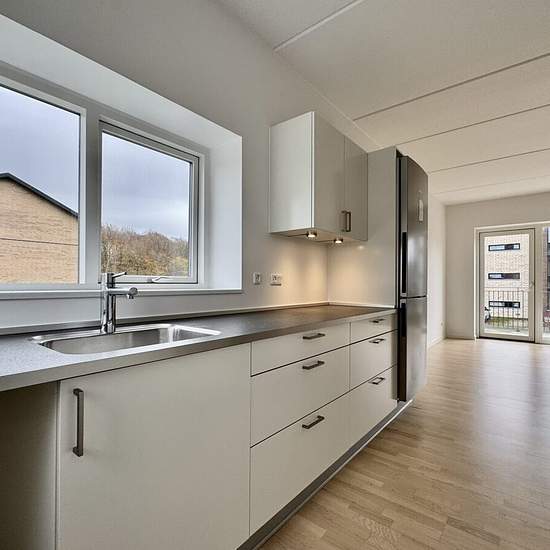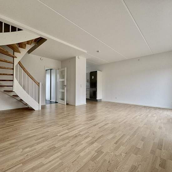 Welcome to this lovely and well-furnished two-storey apartment, located in a quiet area on Kranvejen in Odense. The home offers 116 m² with views of green areas and woodland nearby – perfect for those who want peaceful surroundings close to nature. Lower level (1st floor): You step into a bright and inviting entrance hall that leads on to the apartment’s large, open living and kitchen area. There is plenty of space for both a dining area and a seating corner. This floor also features an attractive bathroom. Upper floor (2nd floor): On the ...