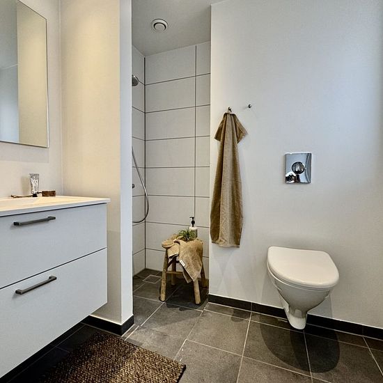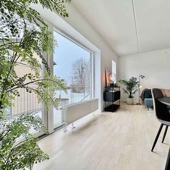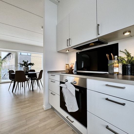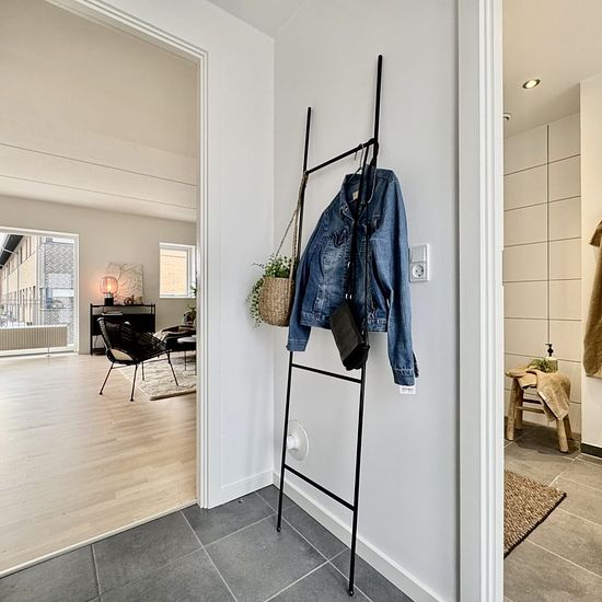 Welcome to Kranvejen, where you will find this lovely apartment on the 1st floor in two levels. The residence offers a total of 112 m² and features plenty of light, good space, and a very functional layout. 1st floor (ground floor): The apartment's ground floor is located on the 1st floor and includes a large, inviting living room with a beautiful corner staircase leading to the upper floor. There is ample space for both a sofa area and a dining area. The spacious kitchen has good counter and cabinet space as well as the possibility to ins...