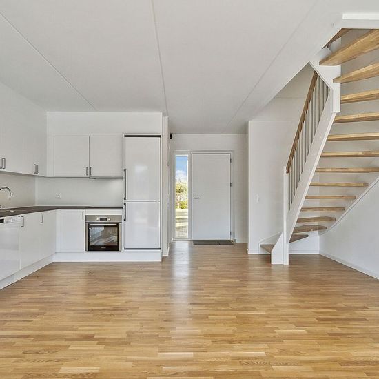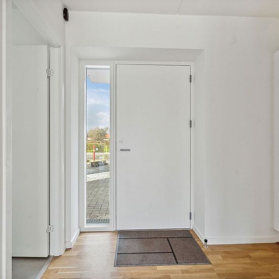 In Admiralens Have in Hjallese, we rent 1- to 4-room apartments and 4-room terraced houses in two levels with a toilet on both floors. Several of the apartments have their own balcony, terrace, or bay window. There is storage space in all apartments. All terraced houses have their own front garden with a shed and parking space as well as a paved backyard with a view of the green park. Appliances All rentals have a dishwasher, and there are hookups for a washing machine and dryer. Pets Tenants can apply for permission to keep one indoor cat...