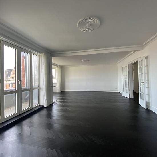 About This lovely penthouse apartment in Østerbro has 4 rooms in total — including 3 bedrooms, 1 living room, 1 kitchen and 2 bathrooms. The apartment will be newly painted and sanded at takeover. The apartment also has 2 balconies, and the building has an elevator.