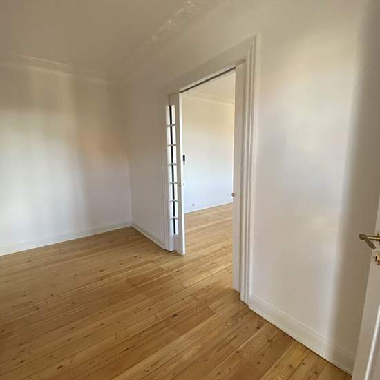 Do you dream of a spacious and bright apartment with classic charm? This 107 m² apartment offers 4 rooms with attractive wooden floors, where the living rooms are filled with natural light and feature beautiful stucco ceilings. The kitchen is bright and inviting, with a dishwasher, good cabinet space and a washing machine – practical and functional for everyday needs. The bathroom is spacious with tiles from floor to ceiling, a shower corner and good storage space in the bathroom area. The apartment has two large adjoining living rooms en ...
