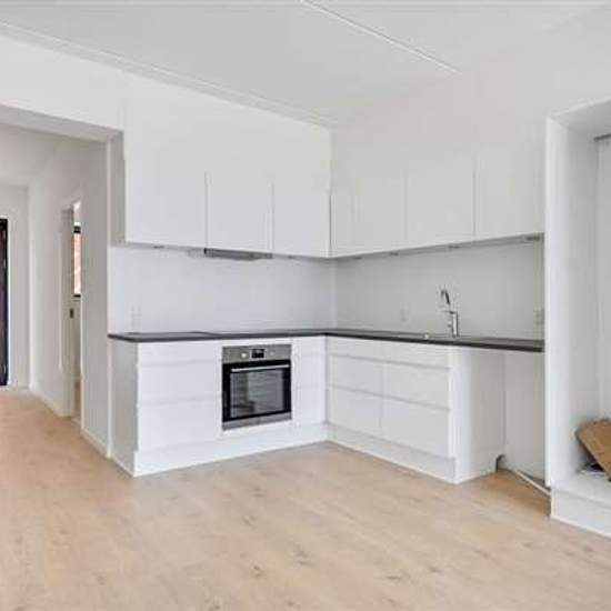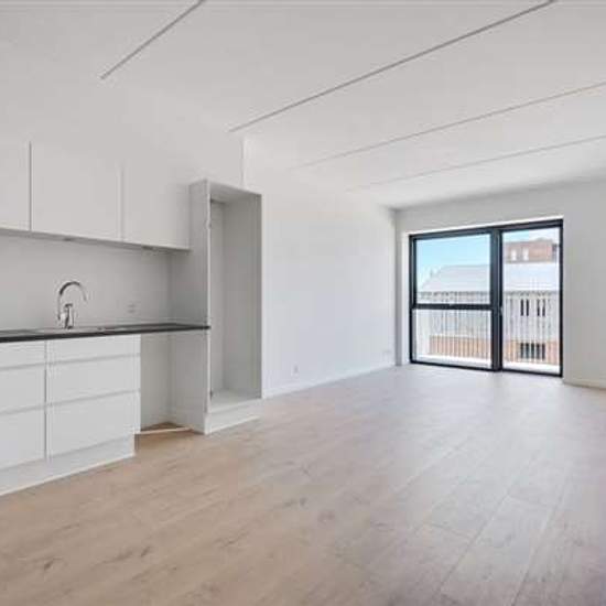 WELCOME TO VÆKSTHUSET The residence The apartments are designed with an open kitchen directly connected to a lovely bright dining area. A lockable storage room of approx. 4.5 m3 (2 m2) is also allocated, located in the shared storage on the 1st and 2nd floors. The continuous flooring in the living room, bedroom, kitchen and hallway is high-pressure laminate in a dark gray shade. In the bathroom there are gray tiles on the floor and on the walls of the shower area. The kitchen is from Svane and the major appliances are of a reputable quality....