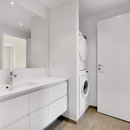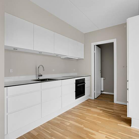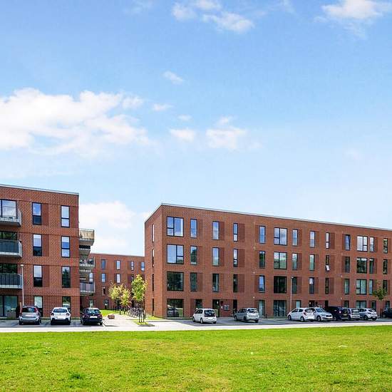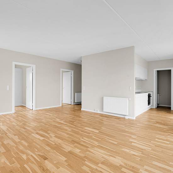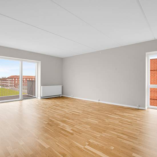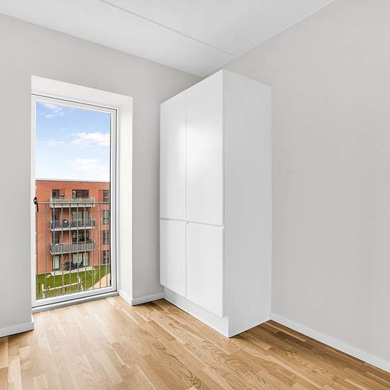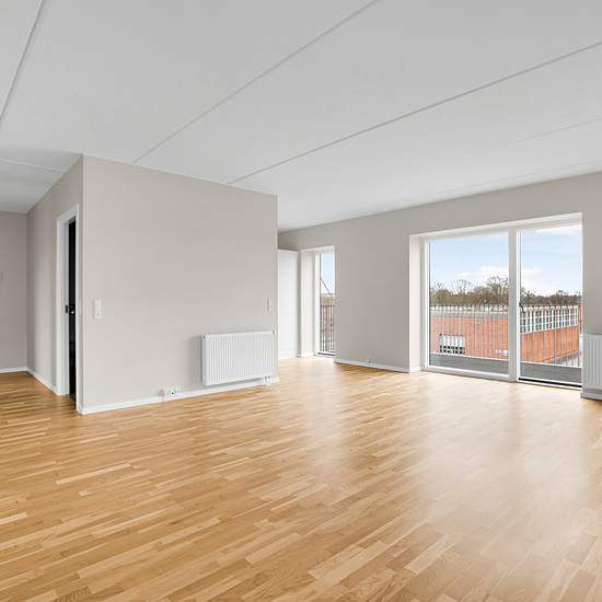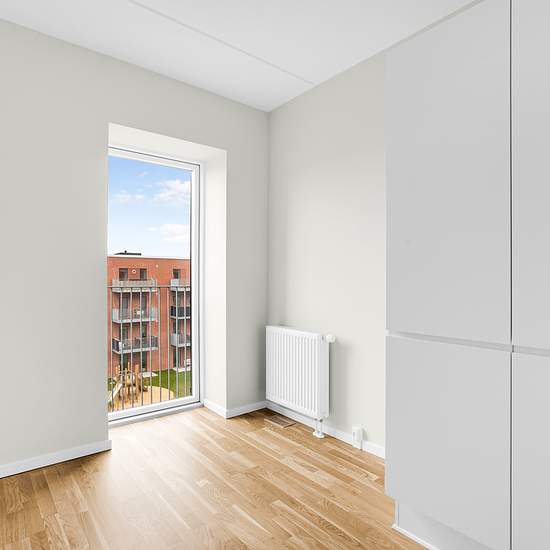 The property At Randers Kaserne you can live in one of the 96 modern residences, which were built in 2020. The property offers a wide range of homes, from 2- to 4-room apartments between 67 and 106 sqm. All units have a number of conveniences, including a private storage room as well as a private balcony or terrace where you can enjoy the sun and the surroundings. The property also offers additional amenities such as an elevator and free parking. An exemption for one pet may be applied for. The residences Inside you will find large, spaciou...