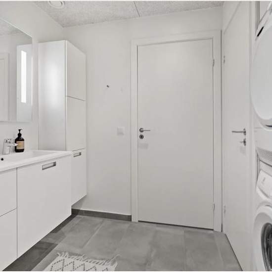 This lovely apartment offers a bright and spacious kitchen-living area with access to a cozy, private terrace. The kitchen is sleek in white and equipped with all necessary major appliances. The bathroom is spacious and includes both a washing machine and a tumble dryer. The apartment also comprises three good bedrooms with built-in closets as well as a practical storage room that provides extra storage space. As a resident you have access to a lovely communal courtyard, beautiful roof terraces and your own parking space. There is also the...