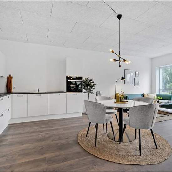 Lejligheden indeholder entre, depotrum og et stort køkkenalrum med udgang til egen altan. Her er et flot hvidt køkken med alt i hårde hvidevarer og i det store badeværelse er der både, gulvvarme, vaskemaskine og tørretumbler. Herudover 3 gode værelser, alle med indbyggede skabe. Her er en dejlig fælles gårdhave, tagterrasser og egen parkeringsplads. Der er mulighed for at søge om en husdyrstilladelse. Inden for kort afstand findes børnehaver, skoler, indkøb og det skønne naturareal ”Nordre Fælled”, hvor du kan boltre dig på et 140 ha stort ...