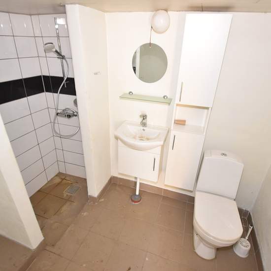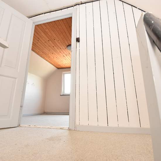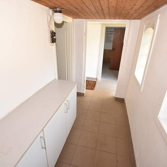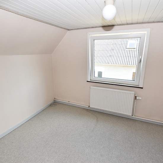Smaller house in Nørhå with 76 m2 on the ground floor and 20 m2 on the first floor. The house is heated by a new pellet boiler, which is located in the outbuilding attached to the house. From the entrance there is access to a bathroom that was renovated in 2018, as well as the kitchen and the boiler room. Large and spacious L-shaped living room directly adjoining the kitchen. There is a nice entrance at the front of the house with access to the first floor and the L-shaped living room. On the first floor there is a hallway/landing with ac...