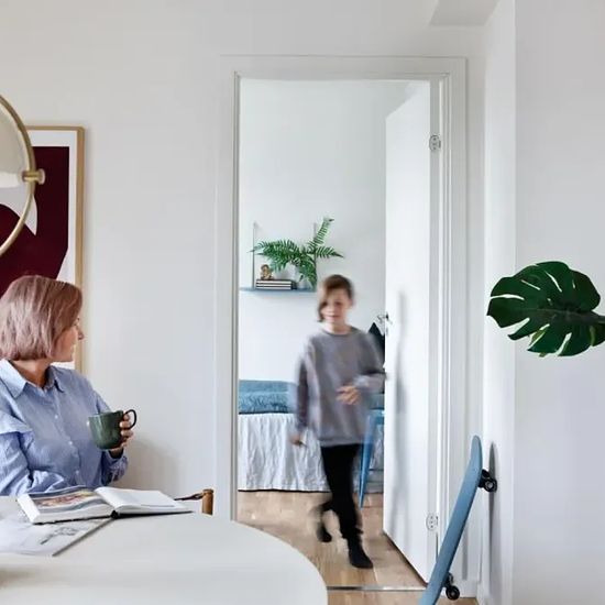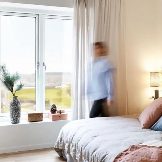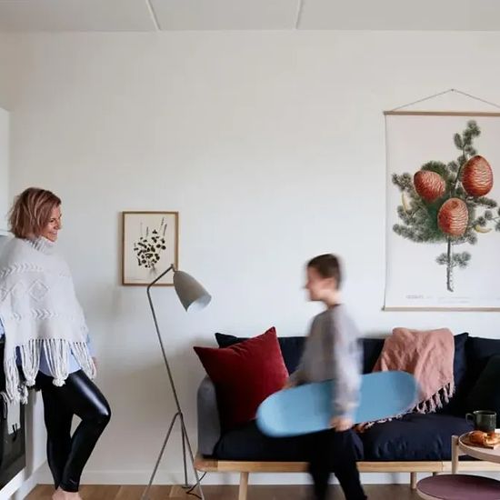 The Apartment 4-room family apartment. Entrance hall with access to a private storage room. Lovely large living room with access to a west-facing sunny, furnished terrace. Connected to the living room is a modern white Invita kitchen with plenty of cupboard space and appliances from Gram, including a dishwasher. Bedroom with built-in wardrobes. 2 children's rooms with plenty of space. Spacious and inviting bathroom with floor tiles and tiles in the shower area, as well as underfloor heating. Molded sink, wall-mounted toilet, and washing mac...