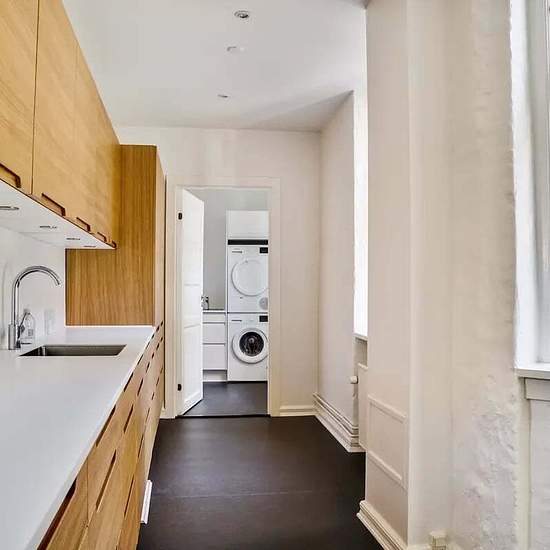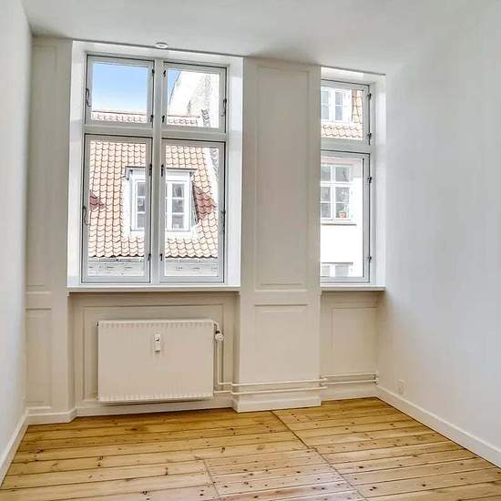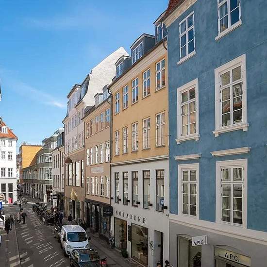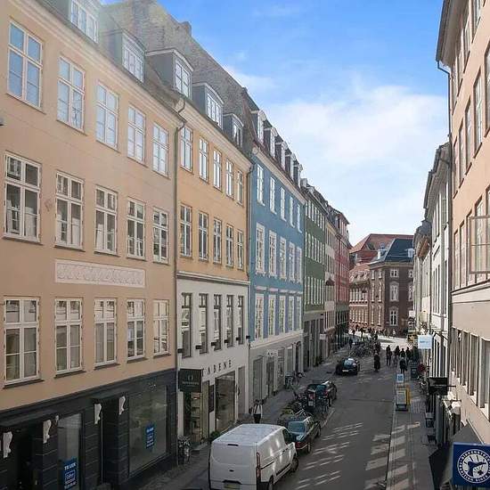 On a lovely side street off Købmagergade sits this 4-room apartment. The apartment includes 3 good bedrooms, a lovely living room, a small dining nook and a nice kitchen with wooden elements. There is also a large bright bathroom and a utility room with a stacked washer and dryer. In Indre By this charming property was built in 1900. Kongens Nytorv and the metro are 450 m away, and close to the building is the bustling Købmagergade with several shopping options and high-end shops.