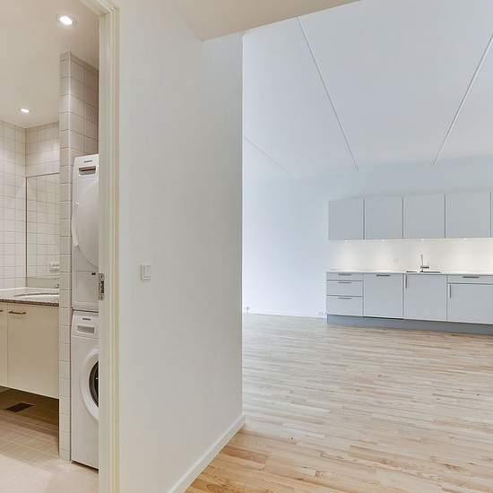 Landlord: DEAS Broker Mail: EMAIL Phone no.: The apartments have unusually high ceilings and large windows that allow light to stream in from all angles, making the homes appear bright and welcoming. The kitchen features quiet built-in appliances with fully integrated fronts; the bathroom includes a washer-dryer stack and a large shower enclosure. All apartments have wardrobes and storage rooms. Most apartments have a balcony or terrace. The building is in a low-energy class and has been awarded the green energy label A 2015. On the propert...