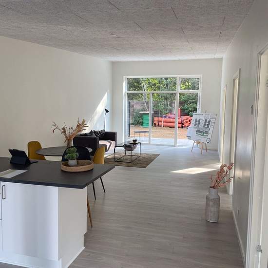Terraced houses for rent on Lyhnes Vej, Askov - Vejen Pets allowed by agreement with us - for pets, one month's rent is paid in advance Free parking area - some terraced houses have their own parking space right at the door 1) Large, spacious rooms with built-in wardrobes 2) Outdoor shed right next to the home 3) Large kitchen-dining area with all major appliances, including an oven installed at eye level 4) Large living rooms with lovely sunny terraces and a garden, surrounded by a hedge 5) Nice bathrooms including a washer-dryer unit! ...