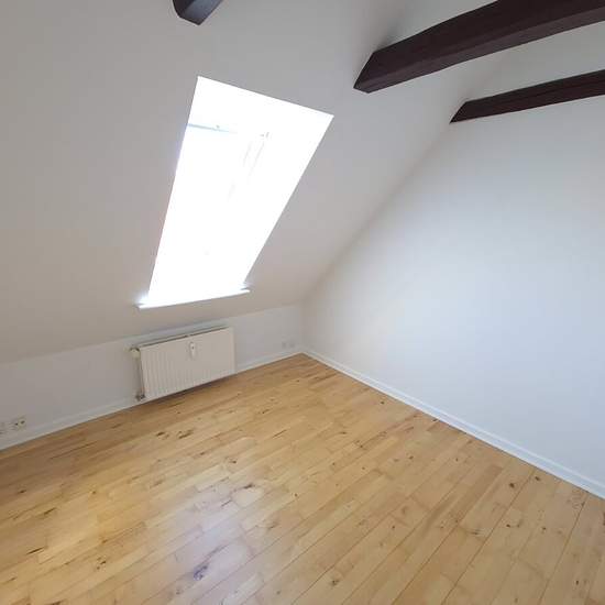 Lovely 4-room apartment with vaulted ceiling, stacked washer/dryer and parking The apartment appears bright and beautifully renovated with lacquered beech parquet floors throughout. The apartment has a vaulted ceiling and exposed beams. Large bright living room, entrance hall with good closet space and 3 bedrooms with closet space. Large bright kitchen with dining area, dishwasher and beech kitchen units. Bathroom with white tiles, white cabinet unit and black stone sink, as well as washing machine and tumble dryer. The building, which was...