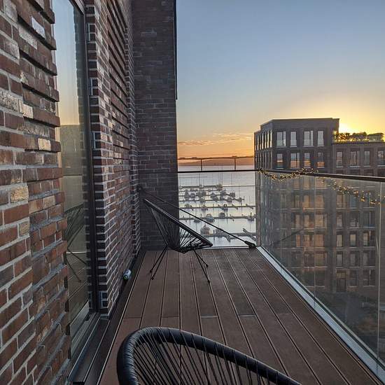 The most delightful penthouse on Havneøen with the most stunning view. The location is hard to beat. Havneøen is an exclusive area where you are both very close to the inner city and at the same time treated to a truly fantastic view over Vejle Fjord as well as the Ibæk and Bredballe forest areas. The town centre is within walking distance and is full of cosy cafés and eateries, while the bustling shopping streets offer a wide range of shopping opportunities. You will have the best conditions for enjoying the superb surroundings and the atmo...