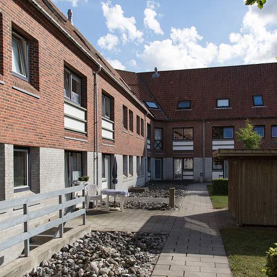 The housing complex consists of block-style buildings of three and four storeys. It is located close to the centre, shopping streets/pedestrian street, a school and daycare facilities. The apartments include a stove, refrigerator, freezer and extractor hood. However, Nyboesgade 62–82 only include a stove. The youth housing units have a kitchenette. The complex includes 48 senior housing units, which are allocated by Vejle Municipality. There is a pleasant courtyard and play areas in the complex.