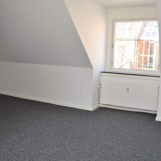 3.5-room apartment located centrally in Viborg. The apartment is laid out with an entrance hall, living room and kitchen in one, where the kitchen is equipped with a fridge with freezer compartment, stove and extractor hood. In addition there is a bedroom with an adjoining small room as well as an extra room that can be used as a children's room, office or guest room. The bathroom has a shower and washing machine. The apartment has its own entrance via stairs to the 1st floor (note: the stairs are steep).